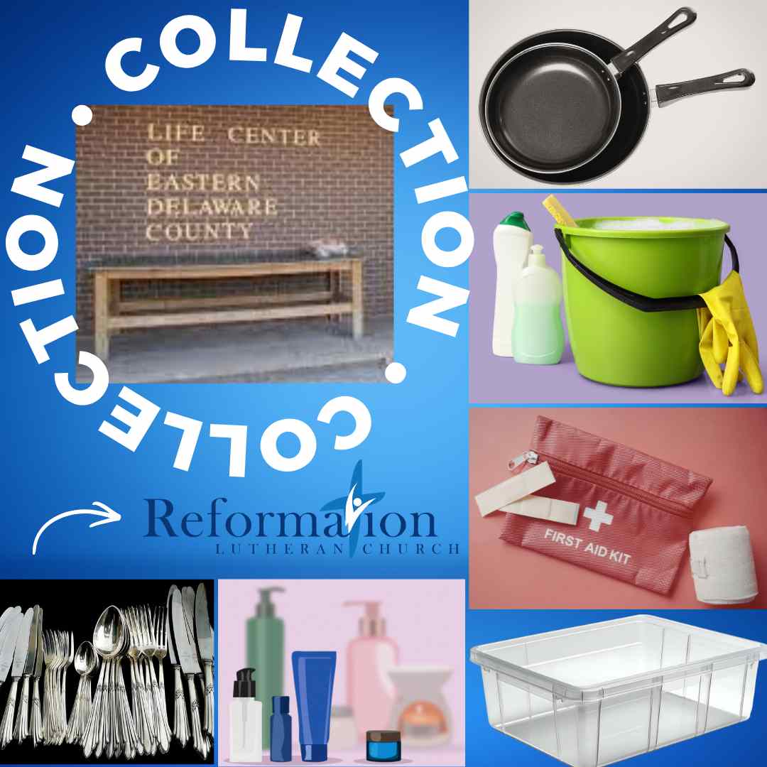 Reformation will be collecting supplies (mops, buckets, bleach, disinfectants, cookware, utensils, storage containers, first aid and personal hygiene items) through March 22. All items will be delivered to the Life Center of Eastern Delaware County. Look for the collection bin in the lobby. Thank you for your generosity!
